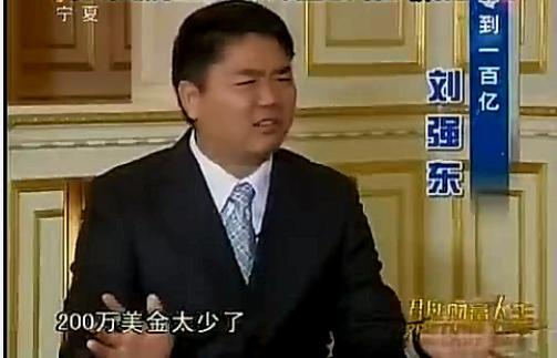刘强东说当时实际是想多要点钱,他说最早自己是想跟银行贷款500万人民币,但他考虑到既然是风险投资就要了200万美金。